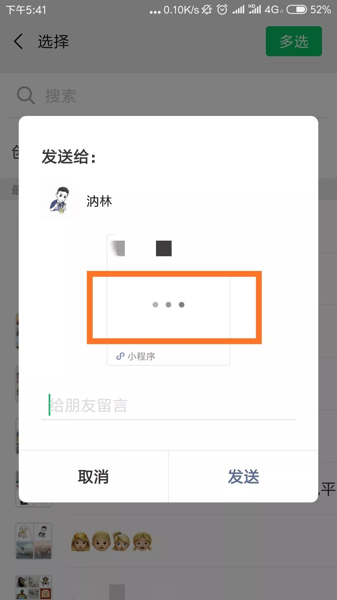 如果不播放一次视频的话,导致转发分享时,小程序会自动退出并且转发失败。如下图所示:
