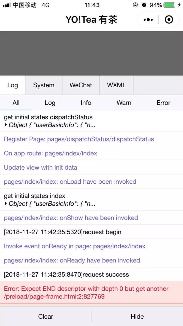 原本我是想在 wxs 中循环遍历一个数组,然后判断符合某个条件后再返回这个数组元素(数组元素是一个对象),在开发者工具是正常的,但是在手机真机上(iOS 和 Android 都是,试过多个机型)查看开发版进入这个页面时却出现白屏,点开 vConsole,有如下提示: