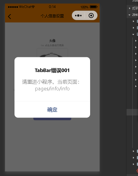 第二个显示:TabBar错误001,请重进小程序。