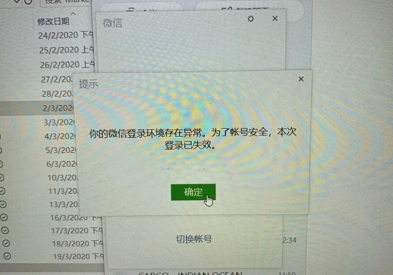 你好我这边也经常多次出现以上问题,你的微信登录环境存在异常,为了账号安全,本次登录已失效,非常紧急,工作使用,麻烦帮忙处理一下,谢谢