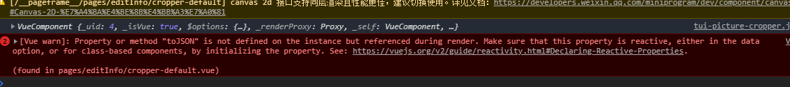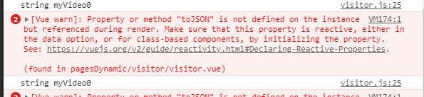 [Vue warn]: Property or method "toJSON" is not defined on the instance but referenced during render. Make sure that this property is reactive, either in the data option, or for class-based components, by initializing the property.