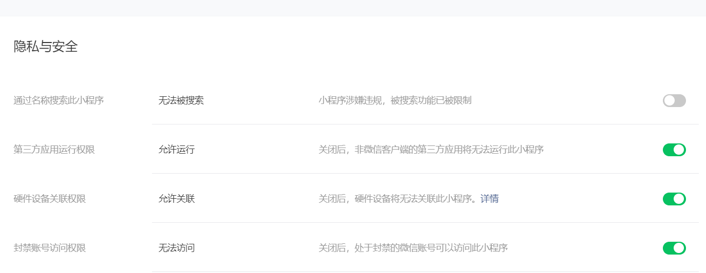 小程序名称无法被搜索。没有违规信息。