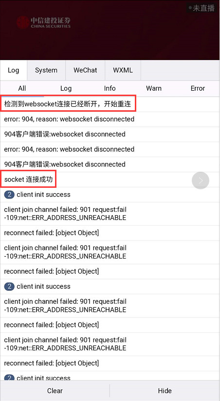 小程序中使用了websocket消息服务和声网agora直播服务 断开网络连接后 两个服务都开始自动重连 可以看到在网络恢复之前声网服务依然在尝试重连 而wx.connectSocket在没有网络的情况下直接进入了成功回调 导致websocket无法正常重连