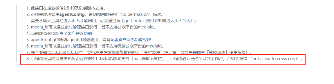 企业微信发送小程序消息,提示not allow to cross corp,怎么关联小程序到工作台?