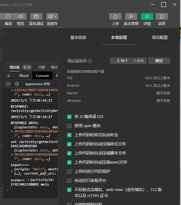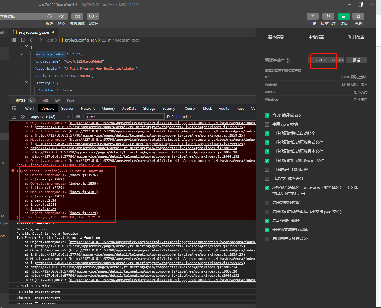 若急于使用开发版体验版进行开发测试,可以使用开发者工具中的【调试基础库】选择2.21.2基础库 ,并给真机推送来绕过该问题。
