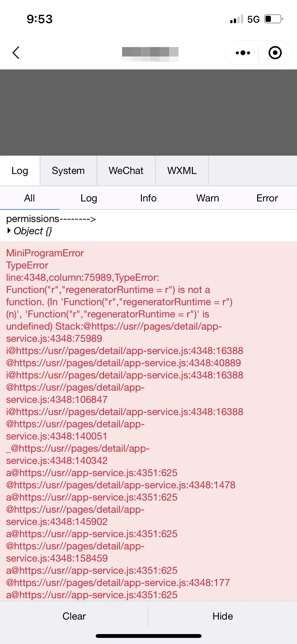 若使用了第三方框架,则需要排查第三方框架的编译是否正确注入 regeneratorRuntime。