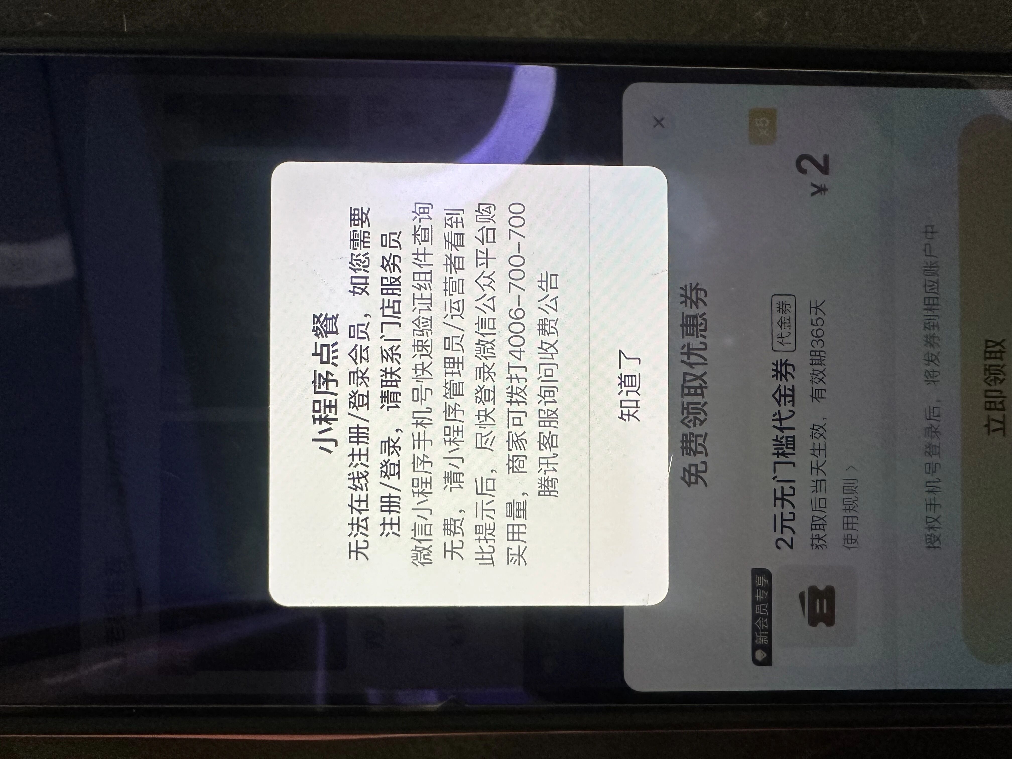 小程序点餐无法在线注册