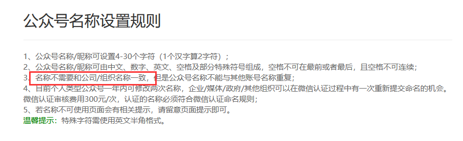 我单位想注册微信公众号,但是单位名称超出了系统规定的30个字符,我单位的名称为32个字符,想知道微信公众号后台能给增加两个字符吗?或者说我注册的名字用简写,如果公众号的名字和法人证名字不一样,会不能影响后续的微信公众号每年的认证?