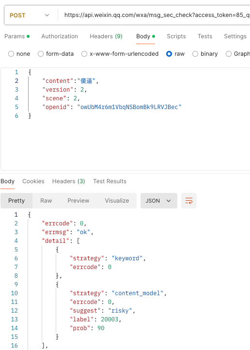你好,核实此为文字编码问题,实际传入的content为%E*%9*%8*%,导致无法识别,请使用utf-8编码。