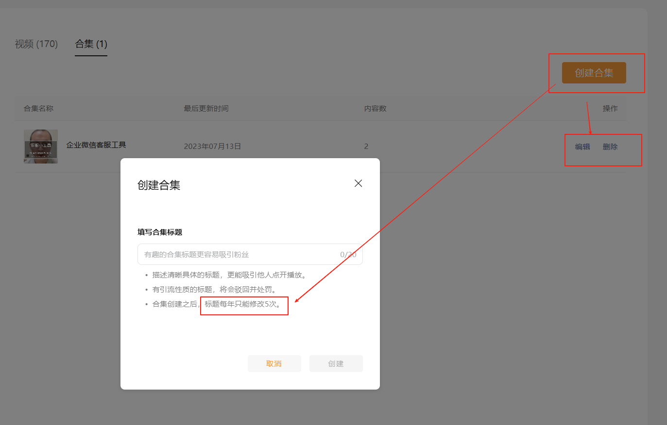 视频号账号主页:短视频和直播 创建的合集分类,支持修改调整和删除吗?