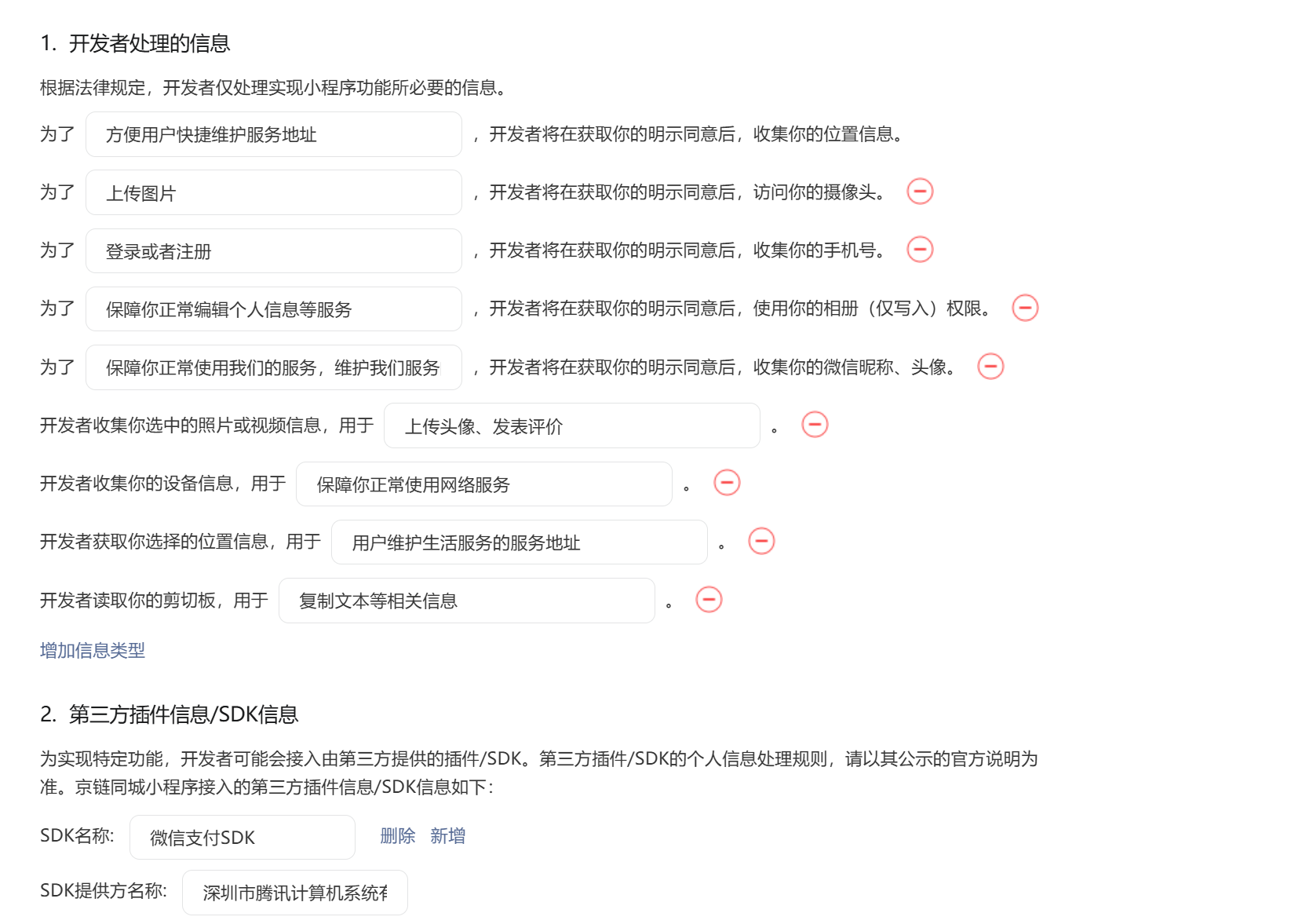 你的代码或者使用的插件里面有相关api,所以就必须完善用户隐私保护协议