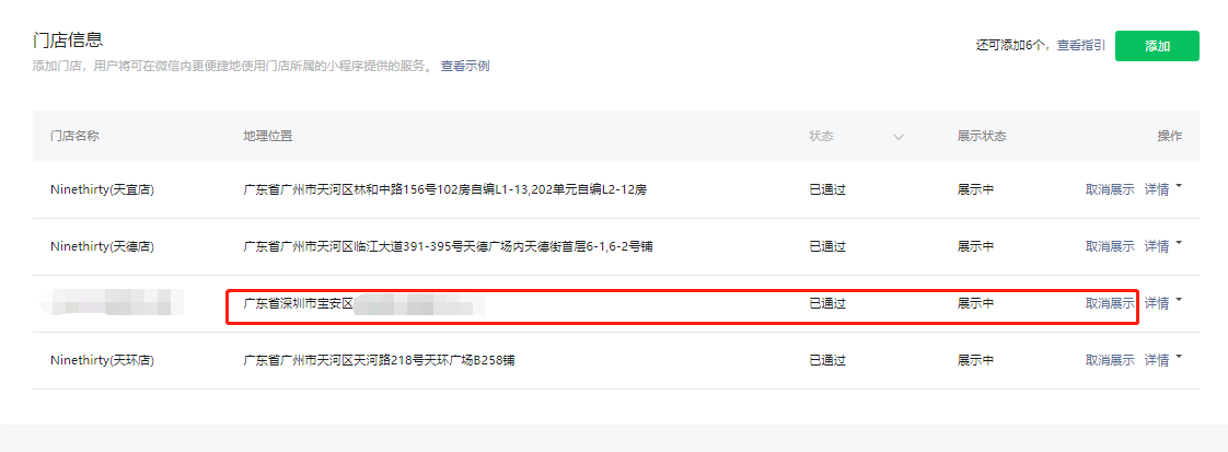 卡包适用门店无法显示门店,在后台门店小程序那里是显示展示中的