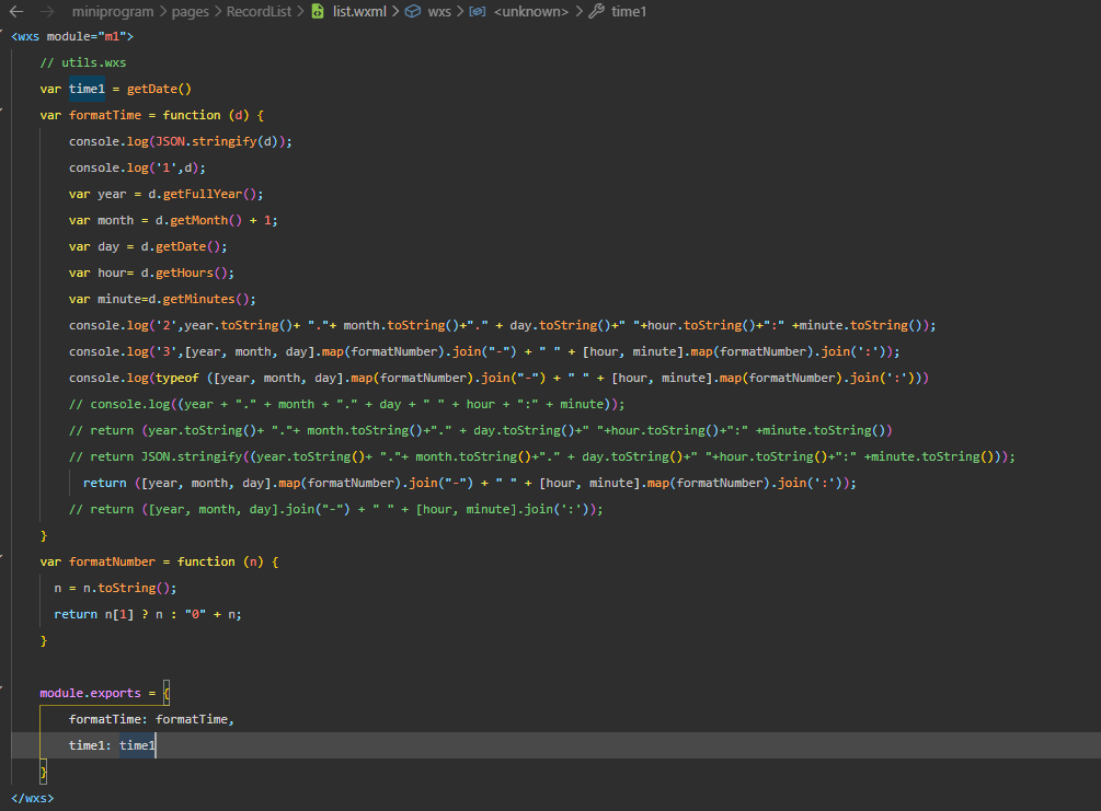 编写一个WXS 模块把列表中的item.time的内容转成格式文本输出,但没有输出结果,在WXS中加入consolel.log打印过程数据,发现WXSRT输出的结果是正确的,但在WXS Runtime info 结果则不正确,请大神指点。