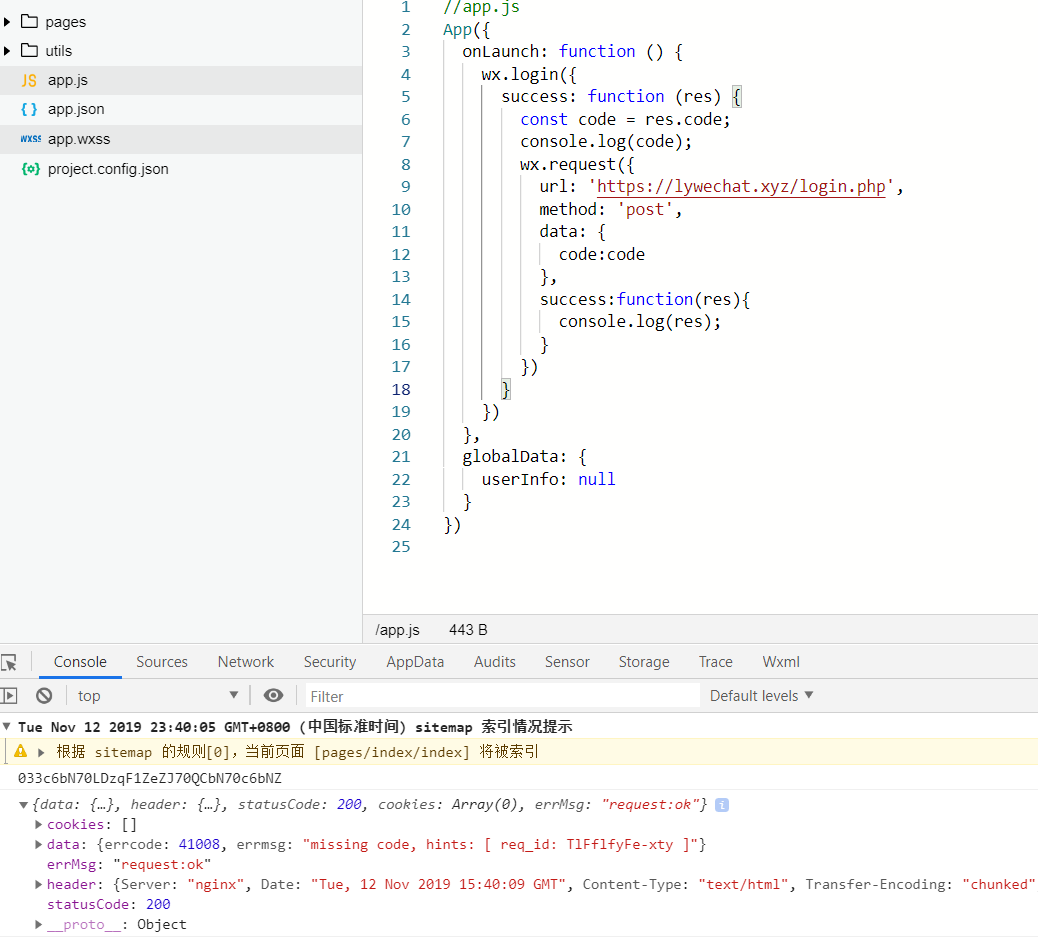 小程序生成的code,通过网页形式访问微信接口可以返回openid,如果用小程序的形式返回错误41008,如图