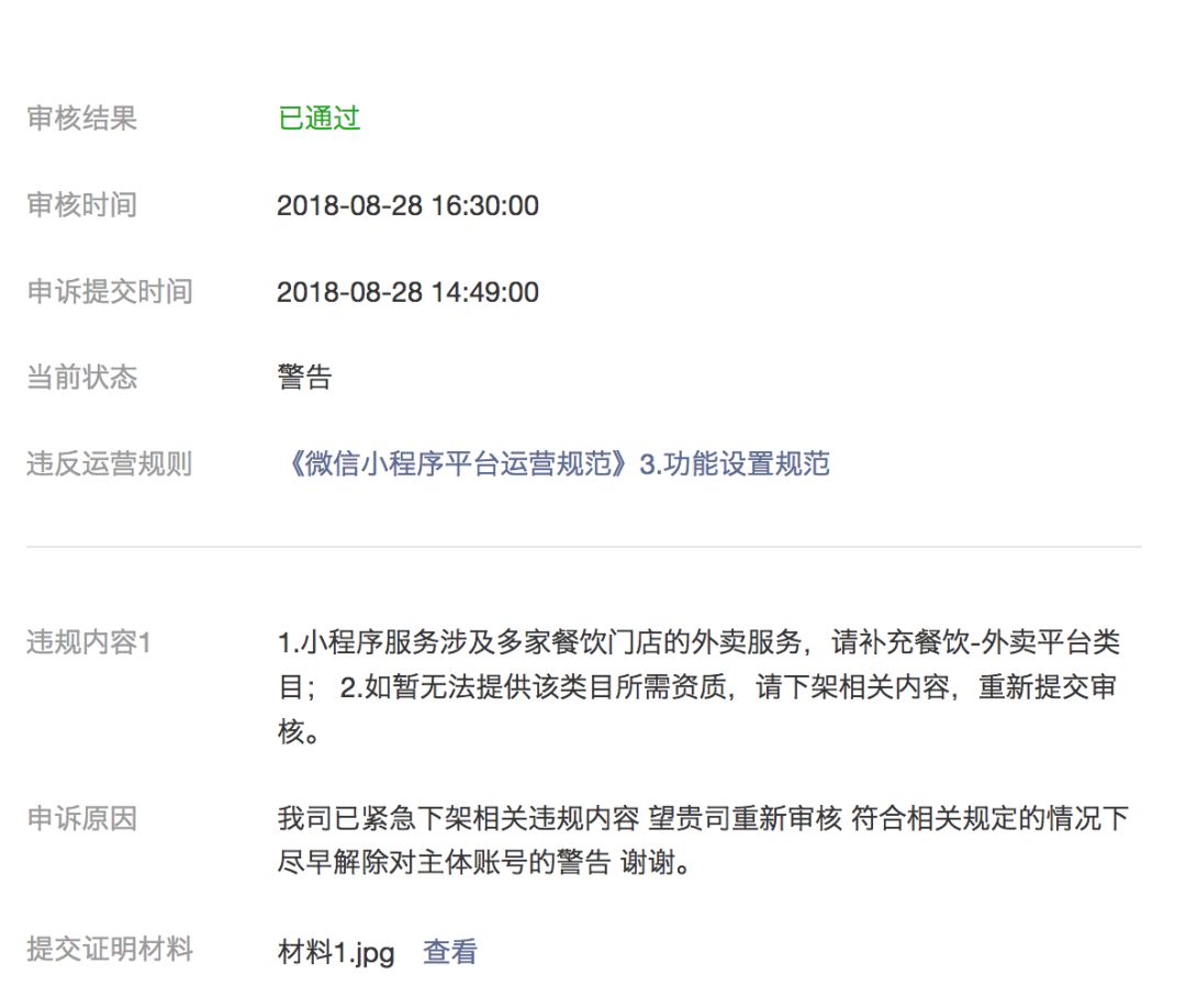 二、我们收到通知后,严肃对待,8月28号下架相关内容,并提交申诉,管理员也给予通过处理。