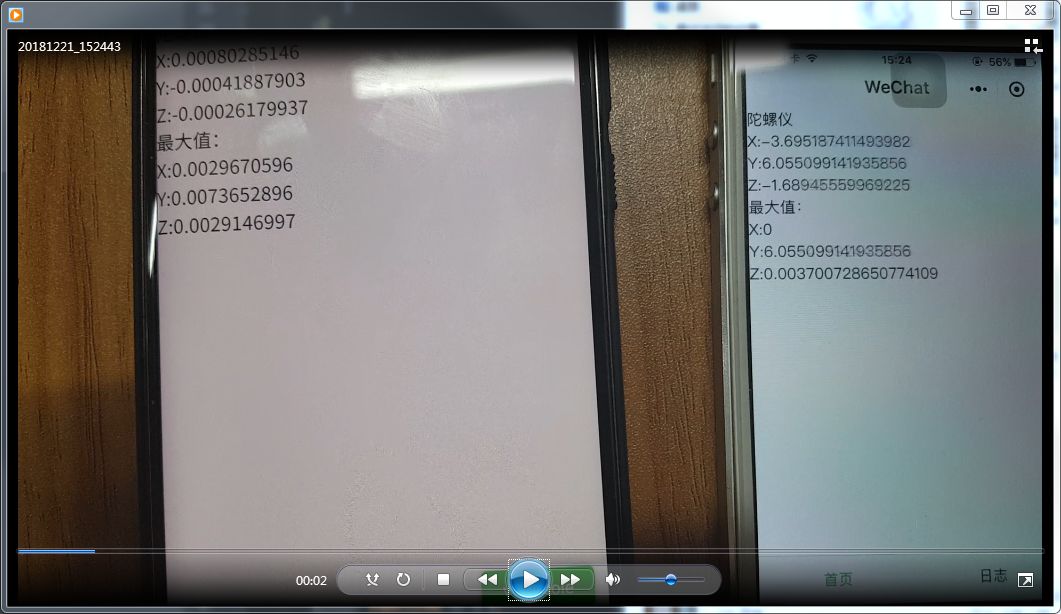 2.用任意版本IOS真机运行,可对比安卓设备。可轻轻任意晃动一下,然后静止放在桌面上观察。IOS设备角速度不断增大。