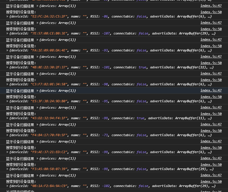 但是感觉和我手机搜索的不一样,而且我手机上明显有几个有name的设备也没搜索到,求大神指教