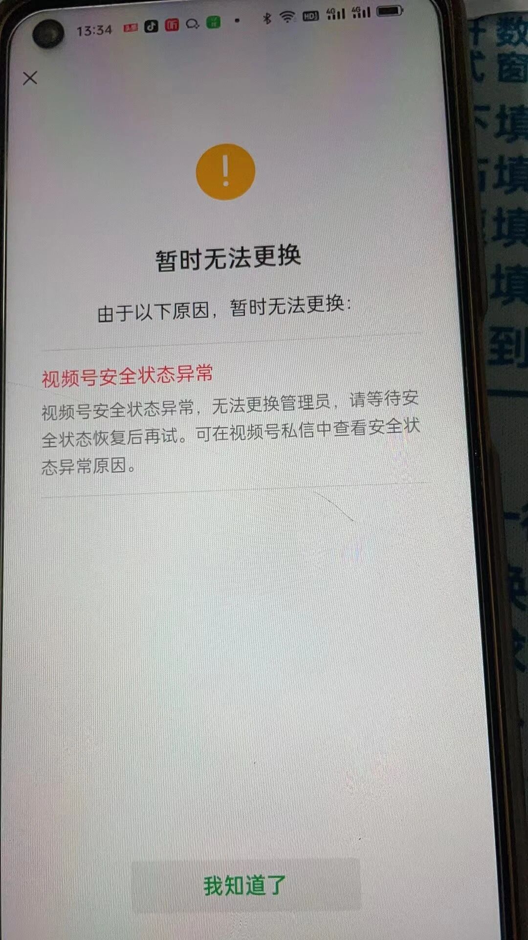 5. 问题描述:想更换视频号管理员,但是显示视频号安全状态异常。