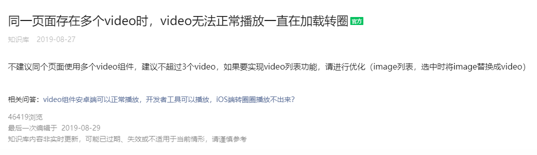 在视频播放列表页遍历video标签,个别视频无法正常播放,显示黑屏(每次操作无法播放的视频不固定),经测试视频播放链接没有问题