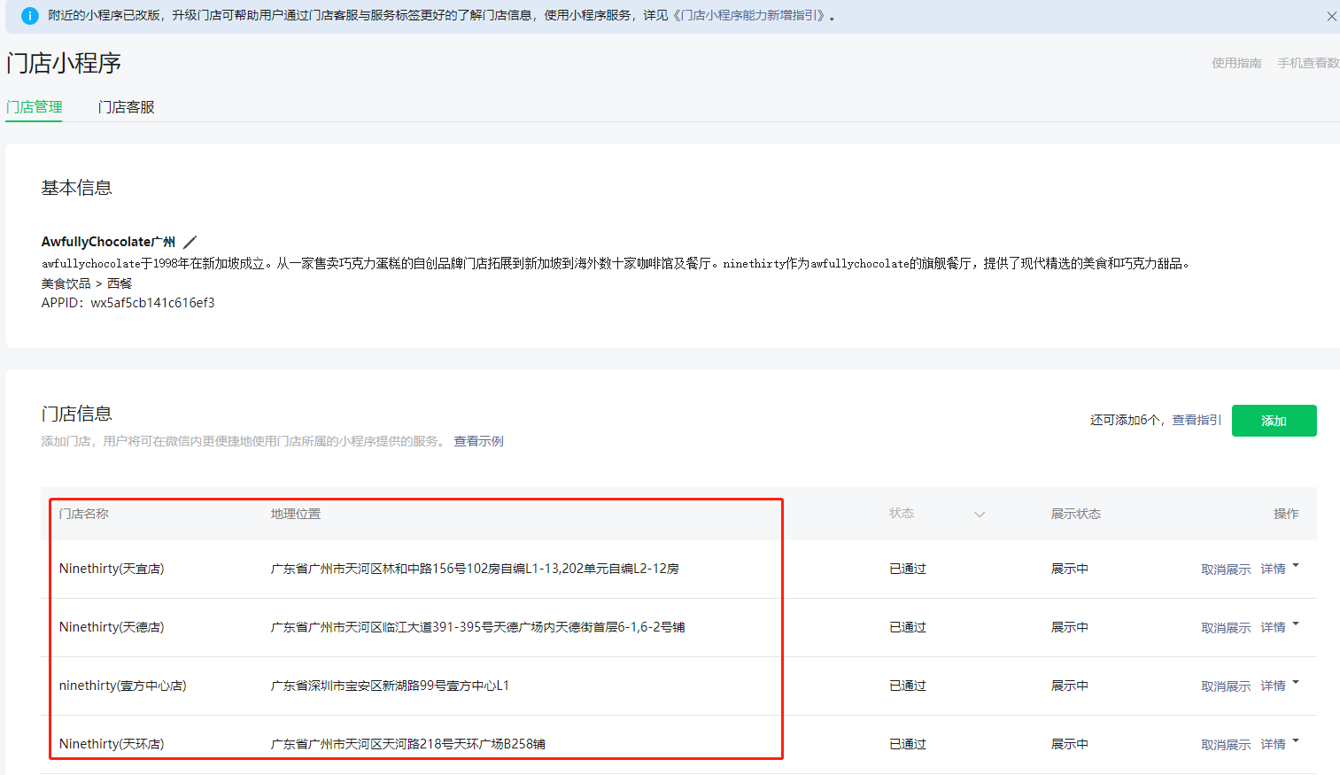 门店小程序设置了展示门店,在卡包那里点击查看少了一个门店,怎么回事?