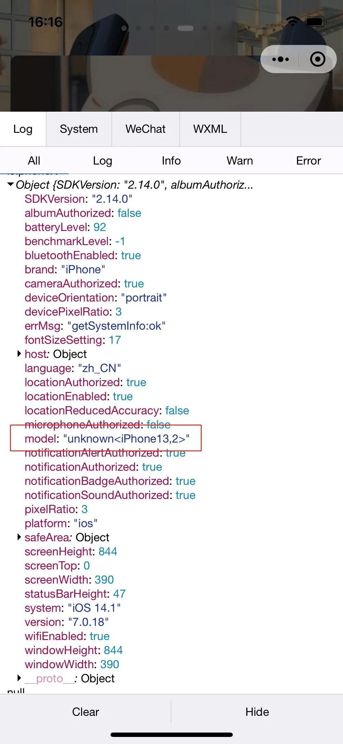 iphone12打开小程序的model返回unknown,微信版本7.0.18
