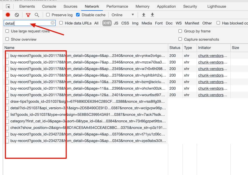这几个请求中检索detail没有进行过滤展示下面的请求