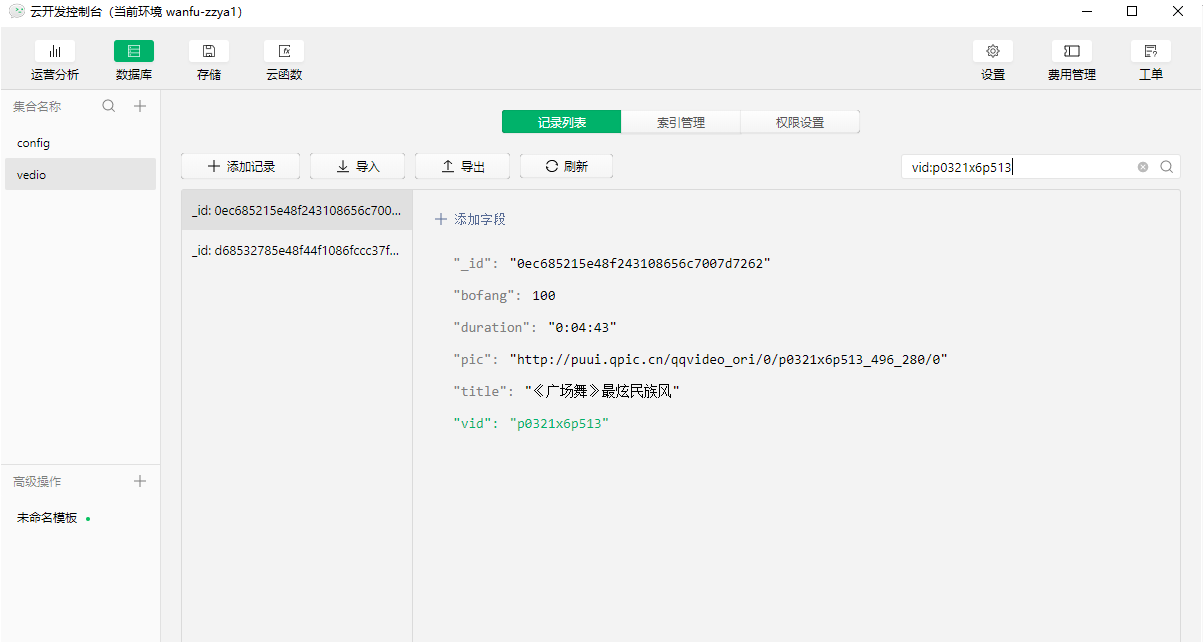 is_exit.put("query" , "db.collection(\"vedio\").where({vid:"+res.get("id")+"}).get()");