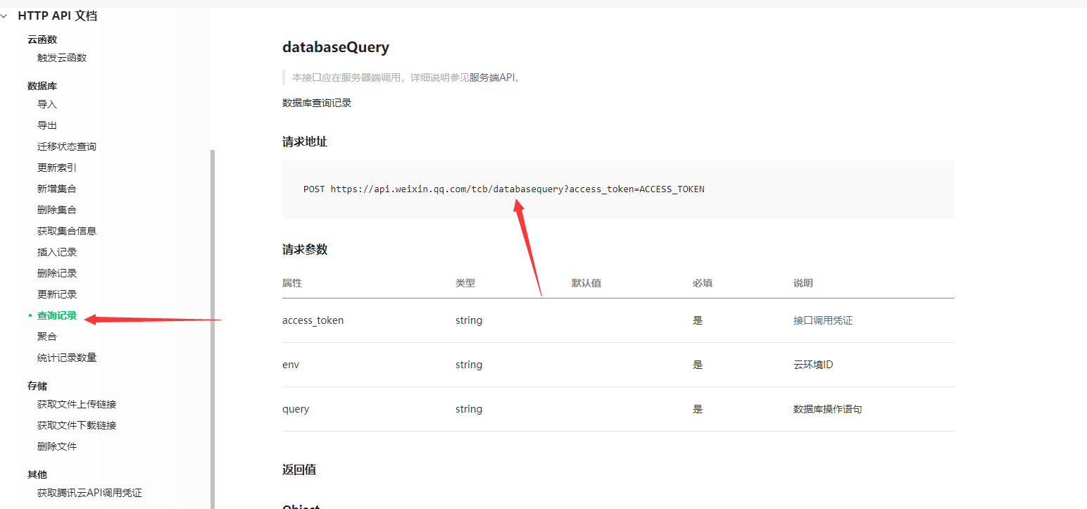 String databasequery = " https://api.weixin.qq.com/tcb/databasequery?access_token=" + accessToken ;