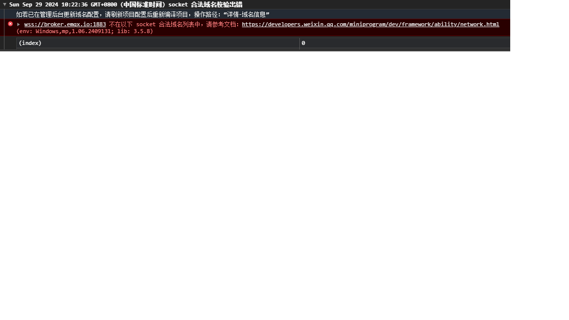 想在微信小程序中与Mqtt服务端通信,但出现如图的问题,请问该如何解决?