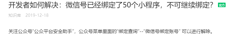问题:微信号已经绑定了50个小程序,不可继续绑定?