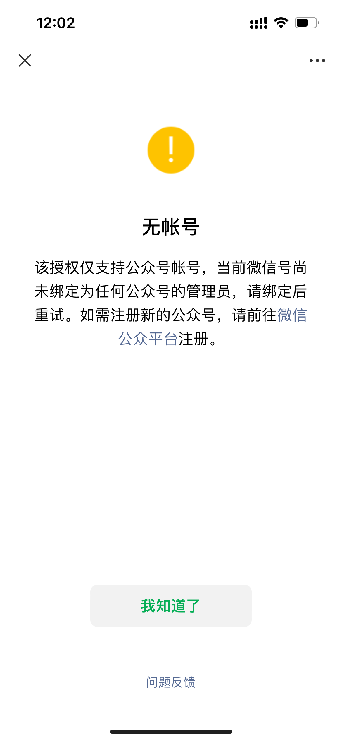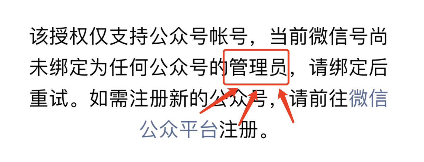 看这个截图,你当前扫码的微信号应该是没有绑定作为管理员的公众号。