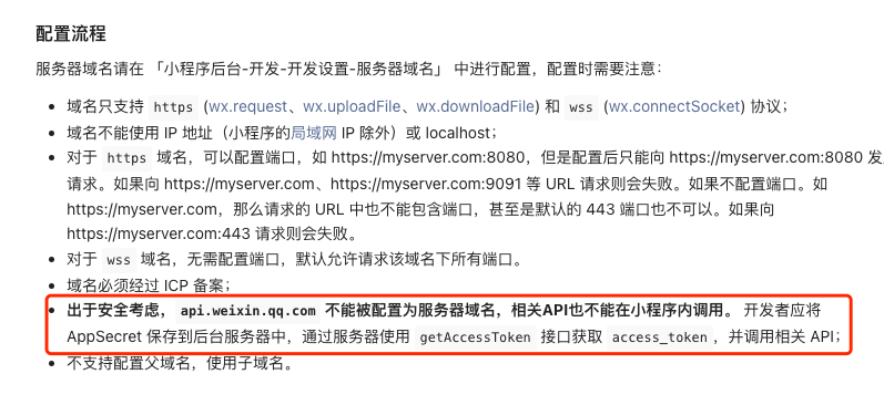 api.weixin.qq.com 相关API不能在小程序内调用,你需要改成在你自己的服务器调用这些接口,小程序内调用你服务器的接口。