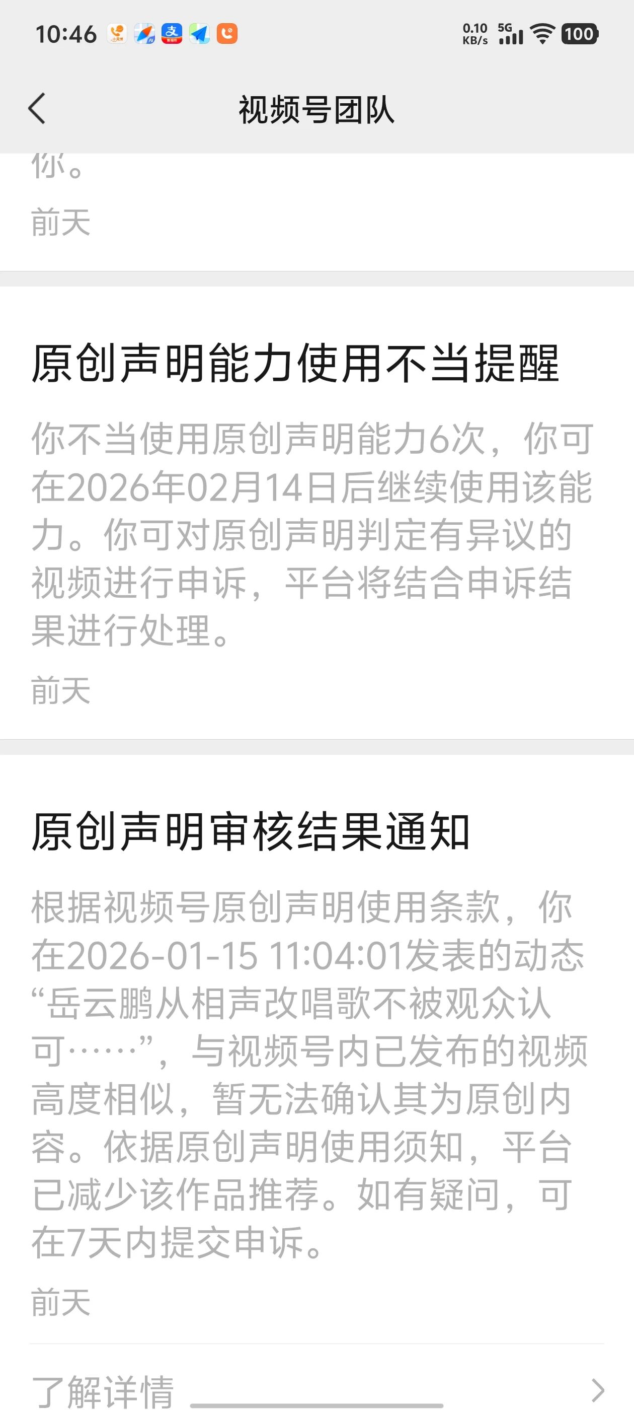 这种延迟检测和追溯的规则对新人极不友好。之前发布的视频,17号才判定违规,但显示的时间却是之前