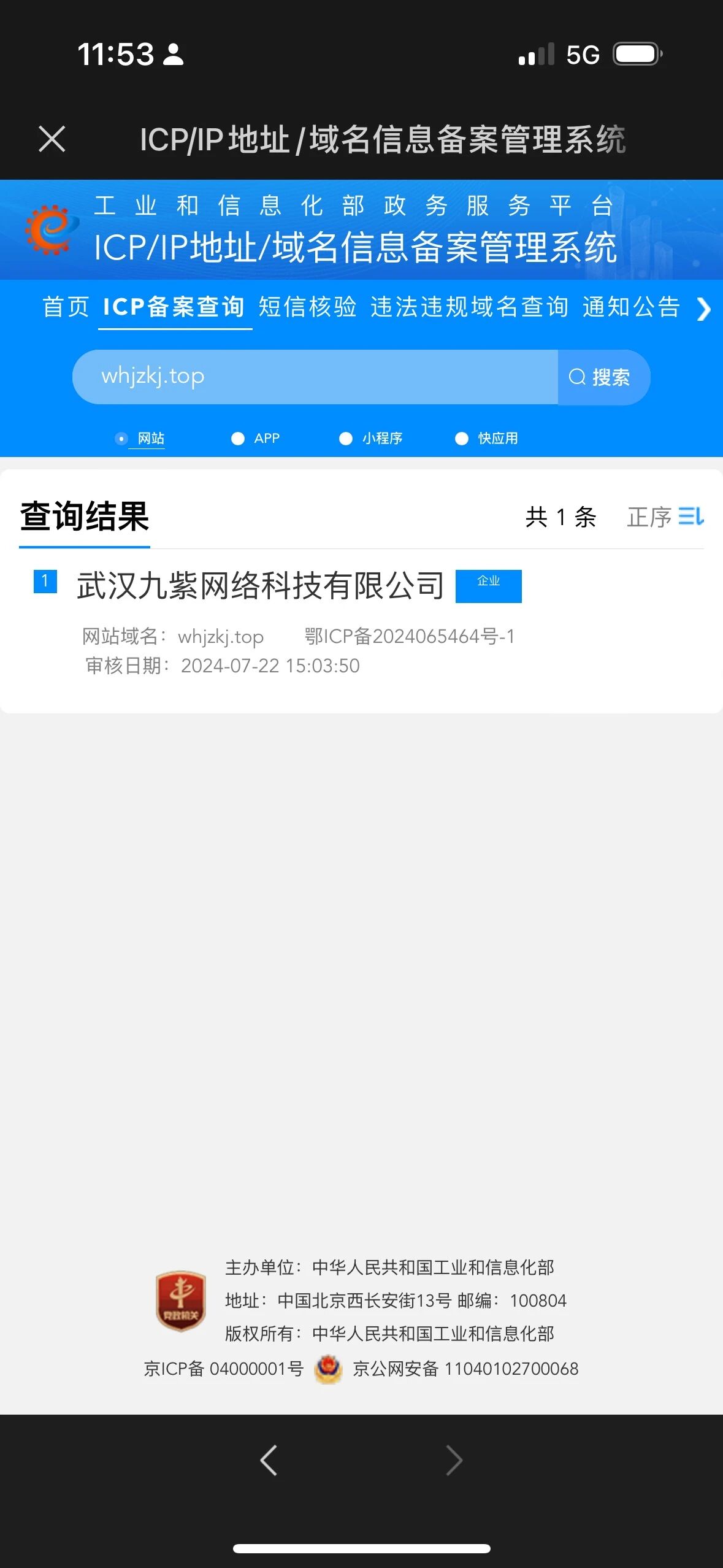 域名:whjzkj.top 备案通过已经超过4个工作日,一直显示未备案有风险,麻烦看看是否没有同步