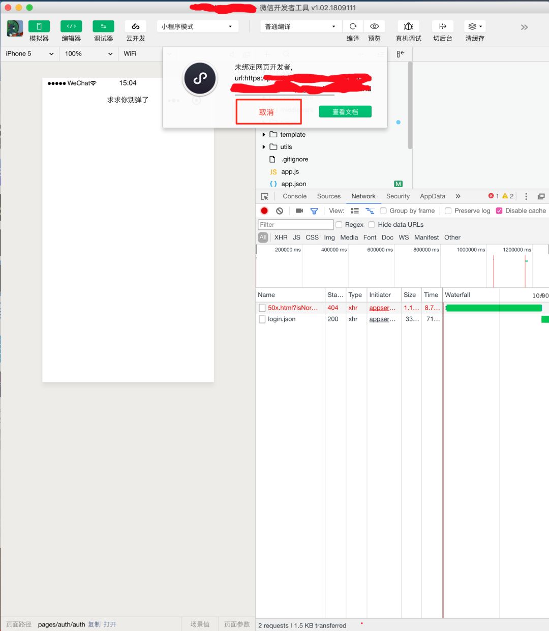 webview里面一个公众号授权页面,由于我不是公众号的开发者,就会弹出这个窗口,刚开始弹的几次还有取消按钮,后来就没有取消按钮了,必须点查看文档,然后跳到浏览器那边打开一个文档的页面,我改2行代码就要弹一下,然后跳到浏览器,我都烦死了,导致开发进度严重滞后