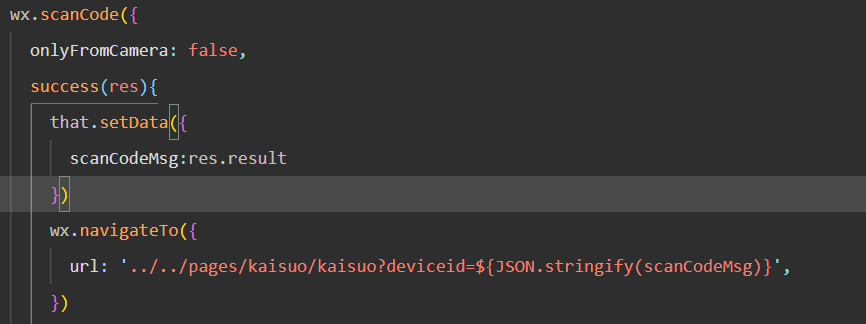 跳转前页面:url:'xxxx?deviceid=${JSON.stringify(scanCodeMsg)}',