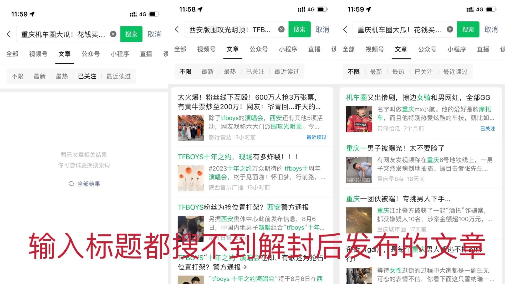 解封后发布的无法被搜到的文章链接:西安版围攻光明顶!TFBOYS十年之约演唱会现场太凶残了! (qq.com)