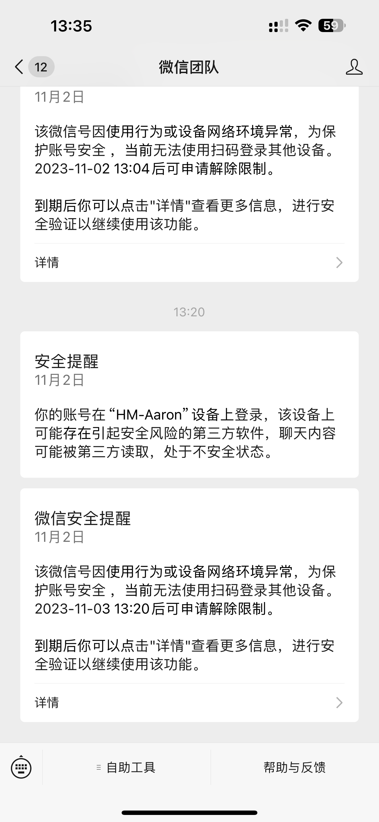 你好,提示“你的微信登录环境存在异常。为了帐号安全,本次登录已失效”的问题,重新扫码登录即可,出现该提示一般是由于微信帐号被其它用户投诉导致(如:涉嫌频繁发送营销类广告骚扰信息等,请遵守微信使用规则,并规范个人行为,谢谢!) 2、 如果用户是在新设备或是新系统登录出现的情况,登录一段时间后会自动解除提示。