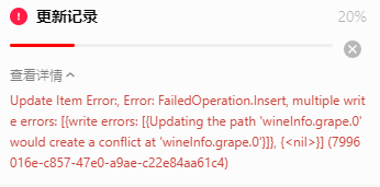 修改其他非数组信息的时候是可以的,但是图中的信息修改不了,一直提示三图的错误,需要如何操作才可以修改到信息?