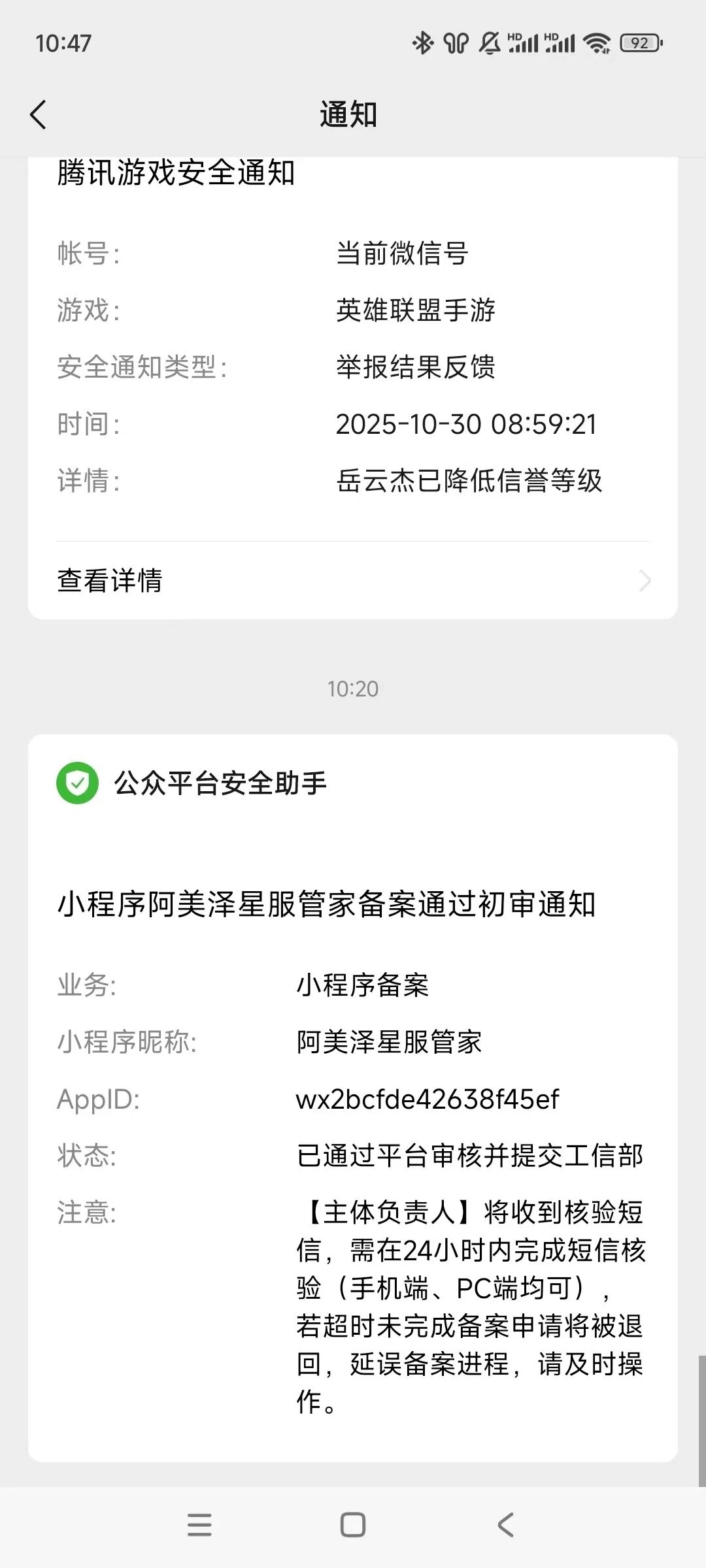 关注后,可在微信内接收相应的重要提醒。