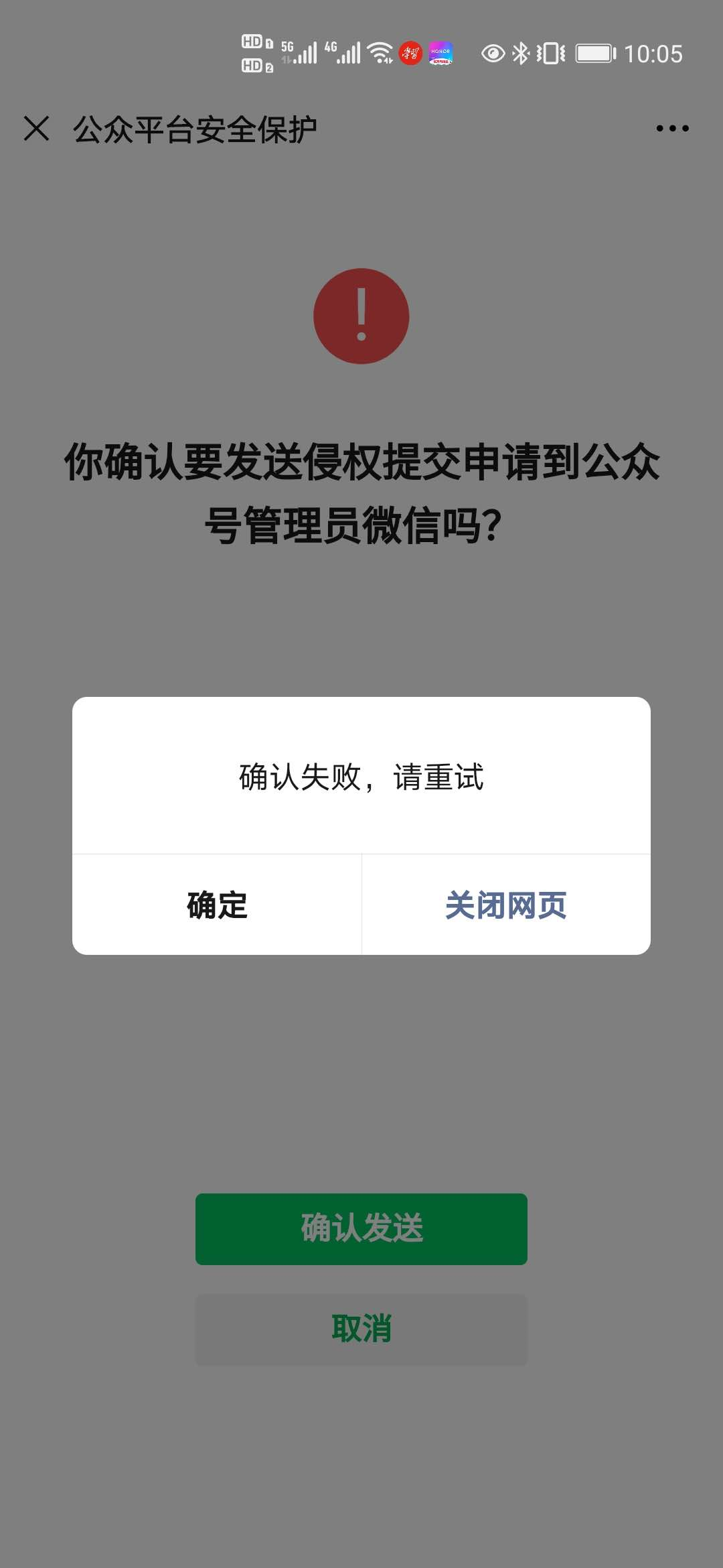 提交侵权申请时提示确认失败