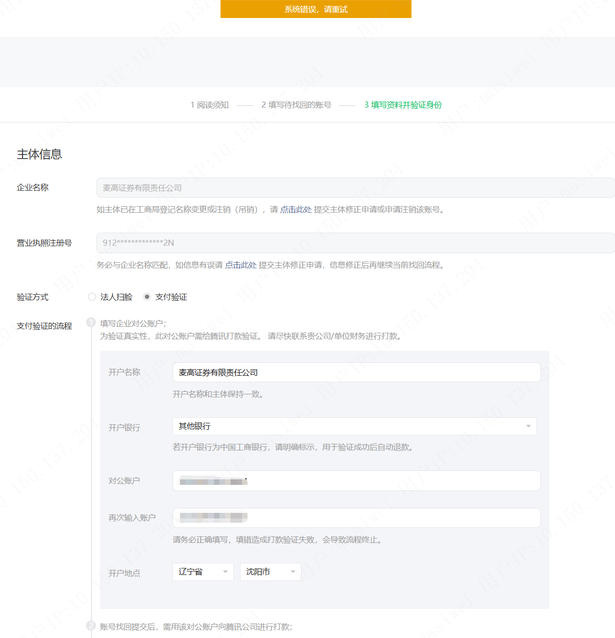 非个人主体:请排查是否因为公众号/小程序的账号成立时间早于企业的成立时间。这种企业类型前端的”帐号异常”报错,可支持走线下找回,找回时需说明前端显示”帐号异常”报错且提供报错截图,不然会被驳回