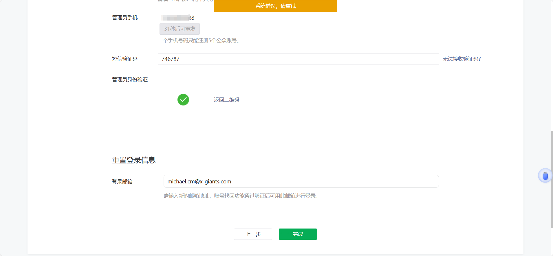 求助,找回公众号显示“系统错误,请重试”,按照教程解决不了,怎么才能处理?