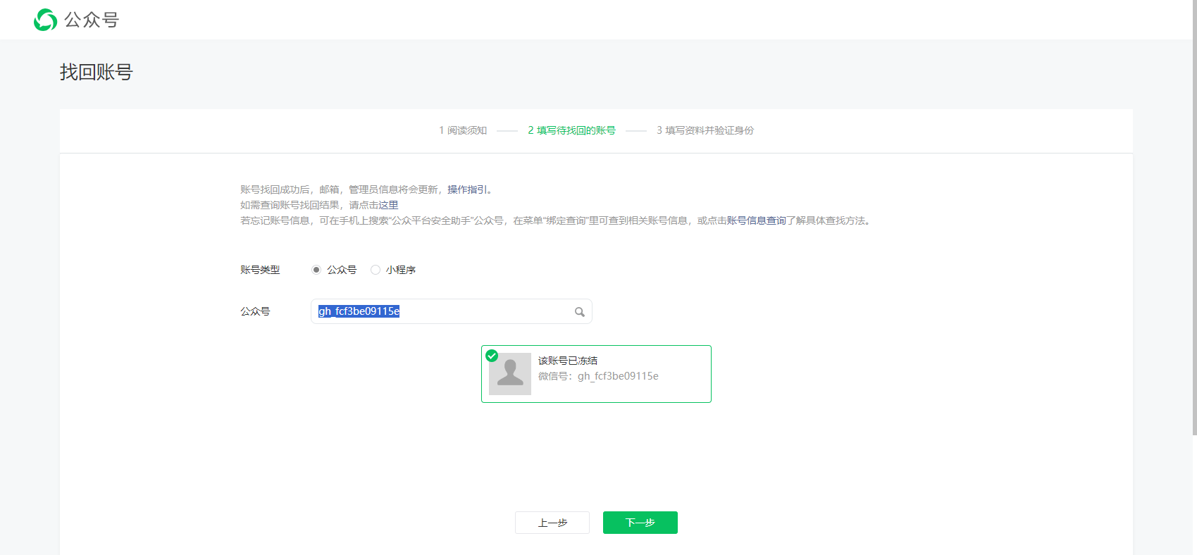 非个人主体:请排查是否因为公众号/小程序的账号成立时间早于企业的成立时间。这种企业类型前端的”帐号异常”报错,可支持走线下找回,找回时需说明前端显示”帐号异常”报错且提供报错截图,不然会被驳回