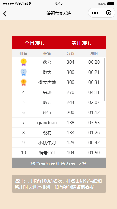 小程序代码仓库地址:https://gitee.com/knowvel/answerContest