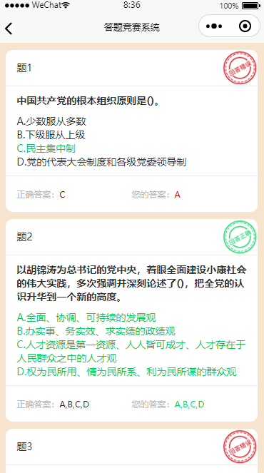 答题竞赛小程序能够切换各种题套,适合各种答题竞赛场景:
