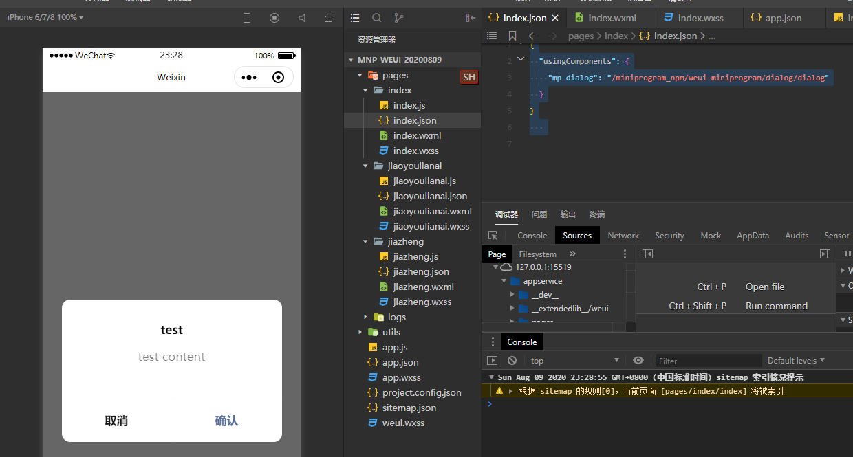 ”mp-dialog“: “/miniprogram_npm/weui-miniprogram/dialog/dialog"