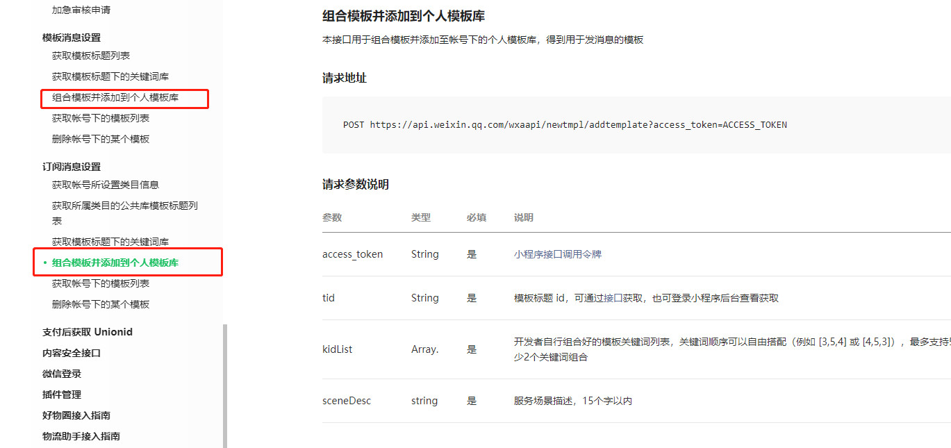 这个增加订阅的接口:https://api.weixin.qq.com/wxaapi/newtmpl/addtemplate