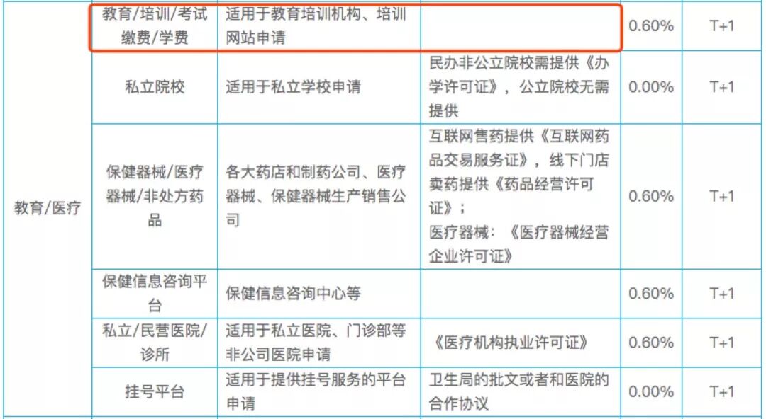 微信支付中却明确了“教育培训机构、培训网站申请时无需提供额外的资质证明”