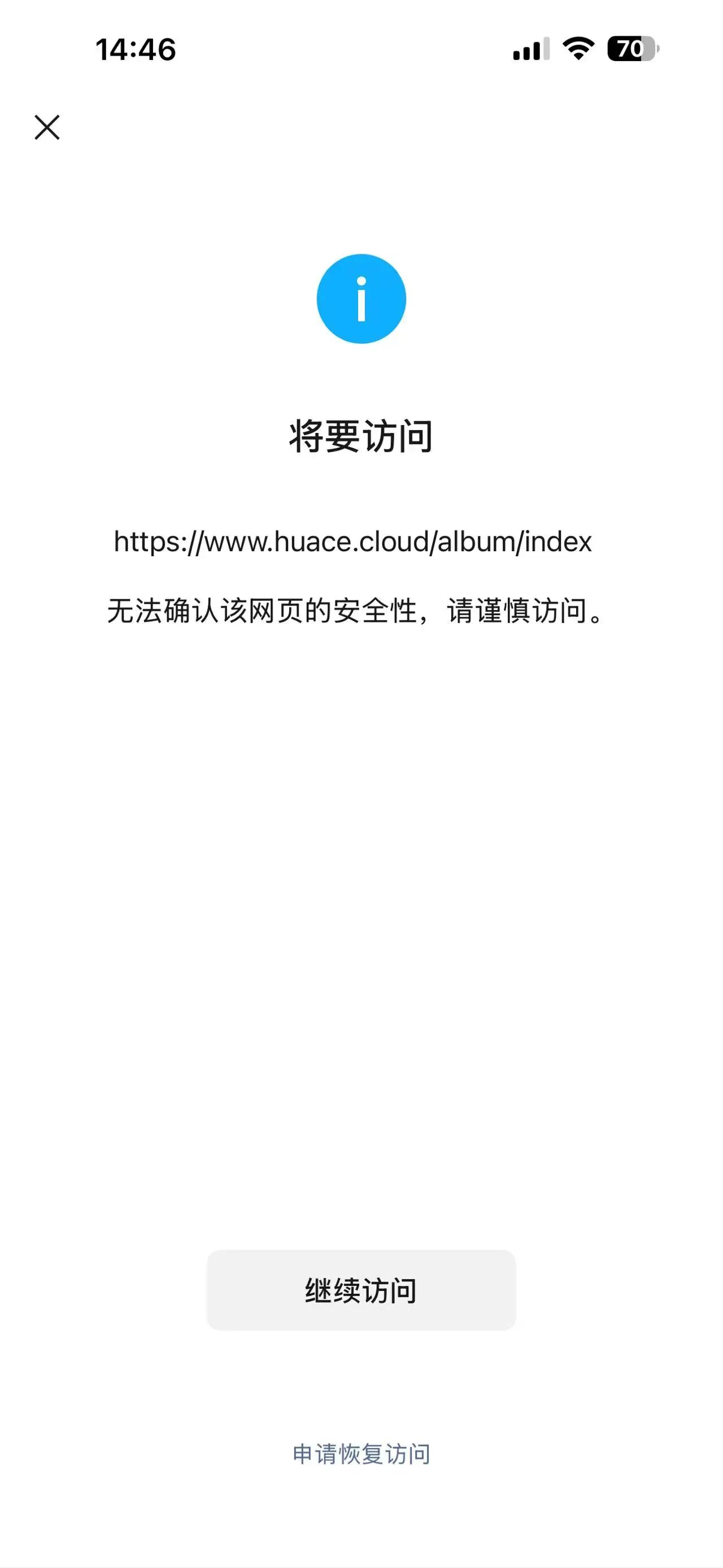 微信环境打开链接打开网站提示 “无法确认该网页的安全性,请谨慎访问”,